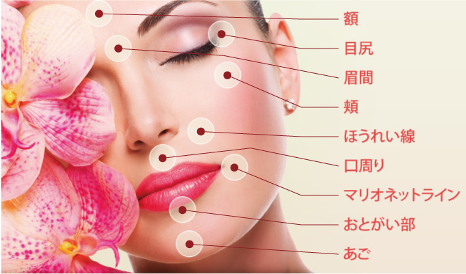 また、最近では、しわだけではなく、中顔面(目の下から口付近まで)に、少量ずつヒアルロン酸を注入して、顔全体の印象を改善し、リフトアップ効果を出す治療もあります。
